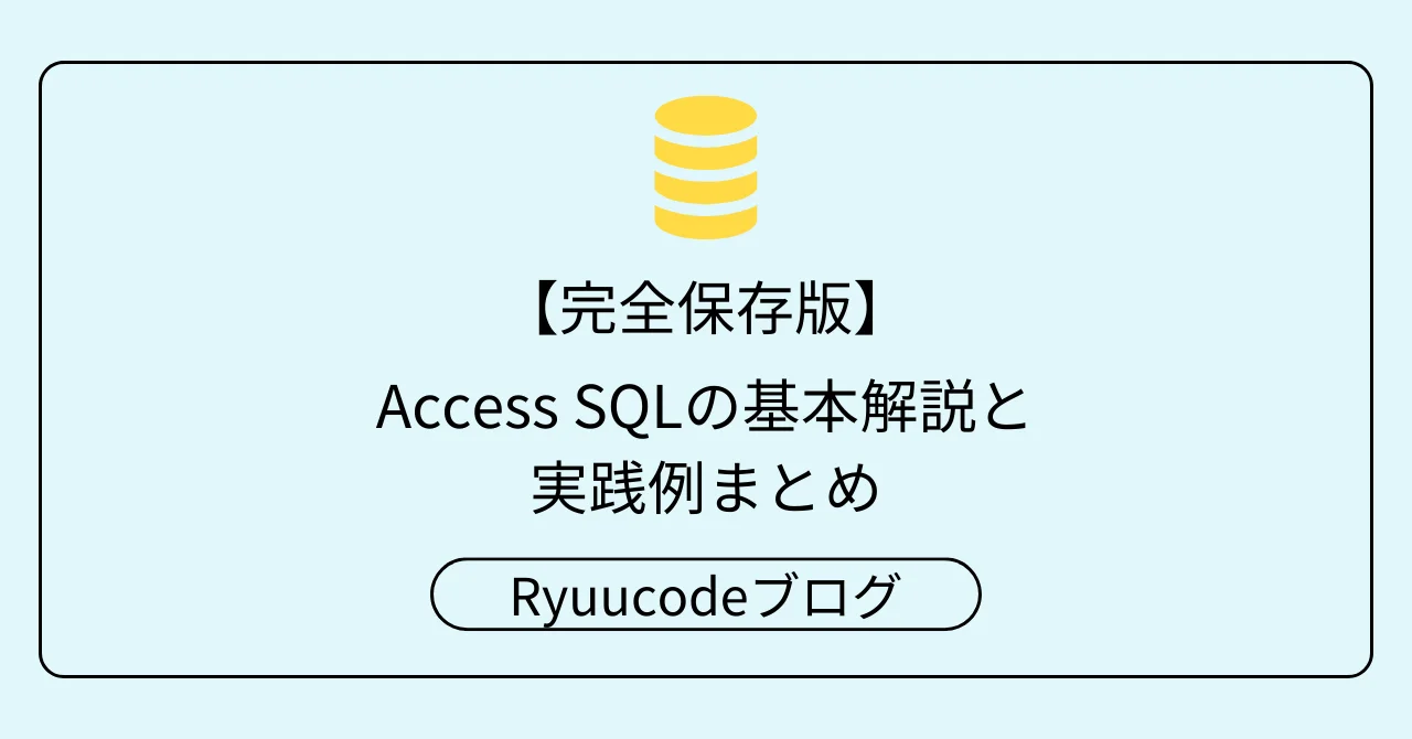 Accessで業務システムを作るうえで、SQL(クエリ)は避けて通れない重要なスキルです。 しかし「難しい」「実務でどう書けばいいかわからない」と感じる方も多いでしょ... -