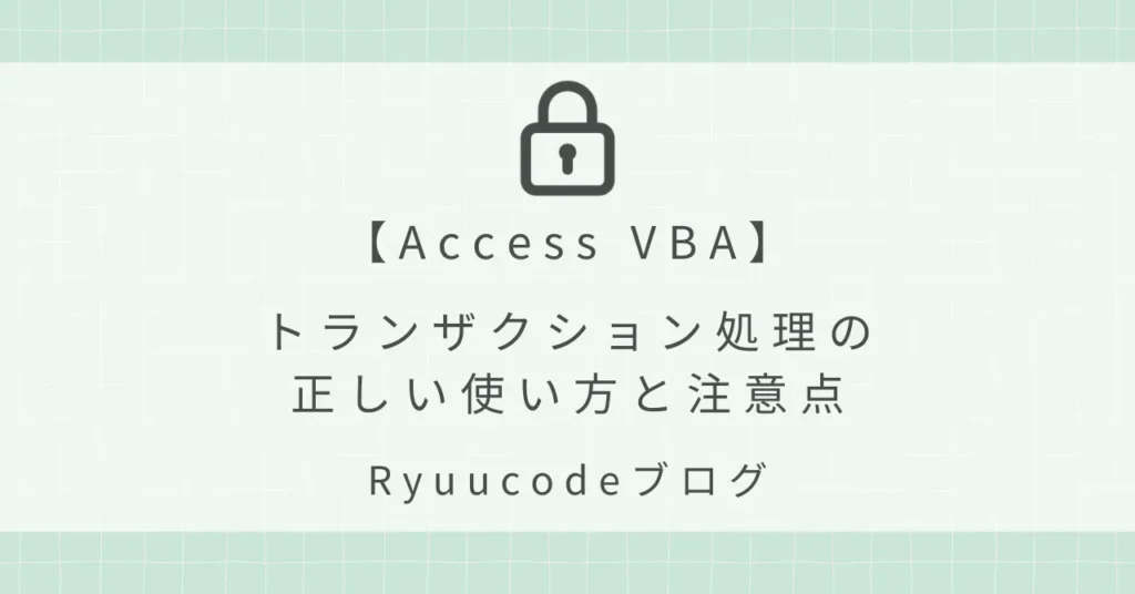 Accessでは、複数のデータ操作をまとめて実行し不整合を防ぐ「トランザクション処理」という機能があります。 本記事ではAccess VBAでのトランザクション処理の正しい使... -