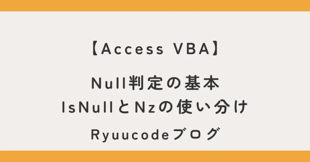 【Access VBA】Null判定の基本|IsNullとNzの使い分け